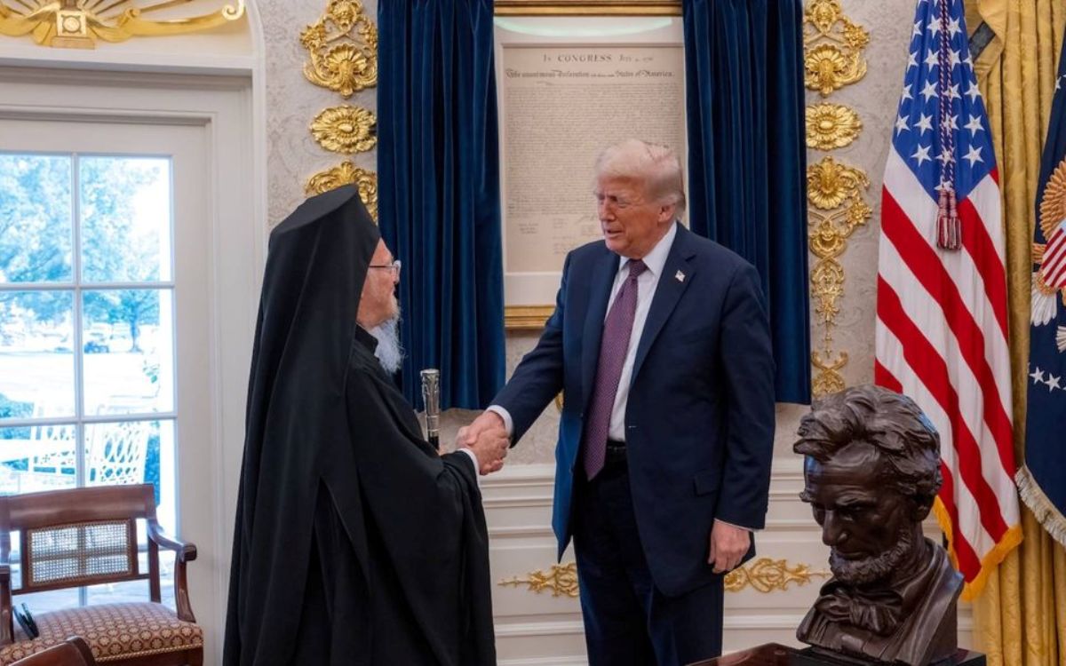 Ο Οικουμενικός Πατριάρχης Βαρθολομαίος συναντήθηκε τη Δευτέρα στην Ουάσινγκτον με τον πρόεδρο των Ηνωμένων Πολιτειών, Ντόναλντ Τραμπ. Κατά τη διάρκεια της συνάντησης εξετάστηκαν ζητήματα που αφορούν το Οικουμενικό Πατριαρχείο, την κατάσταση στην Ουκρανία, την προώθηση του διαθρησκειακού διαλόγου και την προστασία των χριστιανικών μειονοτήτων στη Μέση Ανατολή.