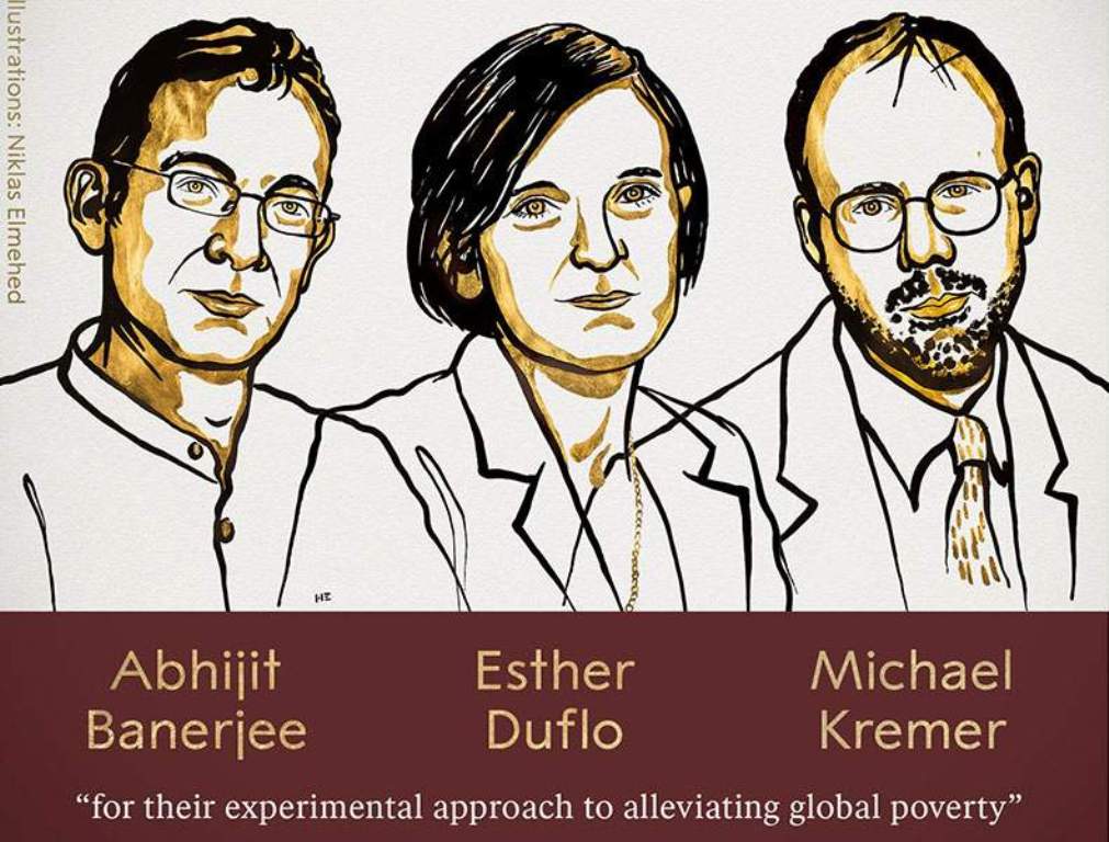 Οι οικονομολόγοι Αμπχιτζίτ Μπανερτζί, Έσθερ Ντιφλό και Μάικλ Κρέμερ είναι οι φετινοί νικητές του Νόμπελ Οικονομίας. Η Σουηδική Βασιλική Ακαδημία των Επιστημών αποφάσισε να τους βραβεύσει για την πειραματική προσέγγισή τους στην καταπολέμηση της παγκόσμιας φτώχειας.