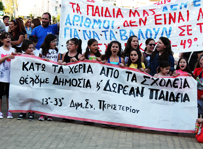 Με δυναμικές κινητοποιήσεις συνεχίζονται οι εκδηλώσεις διαμαρτυρίας για τις συγχωνεύσεις σχολείων στο Περιστέρι.