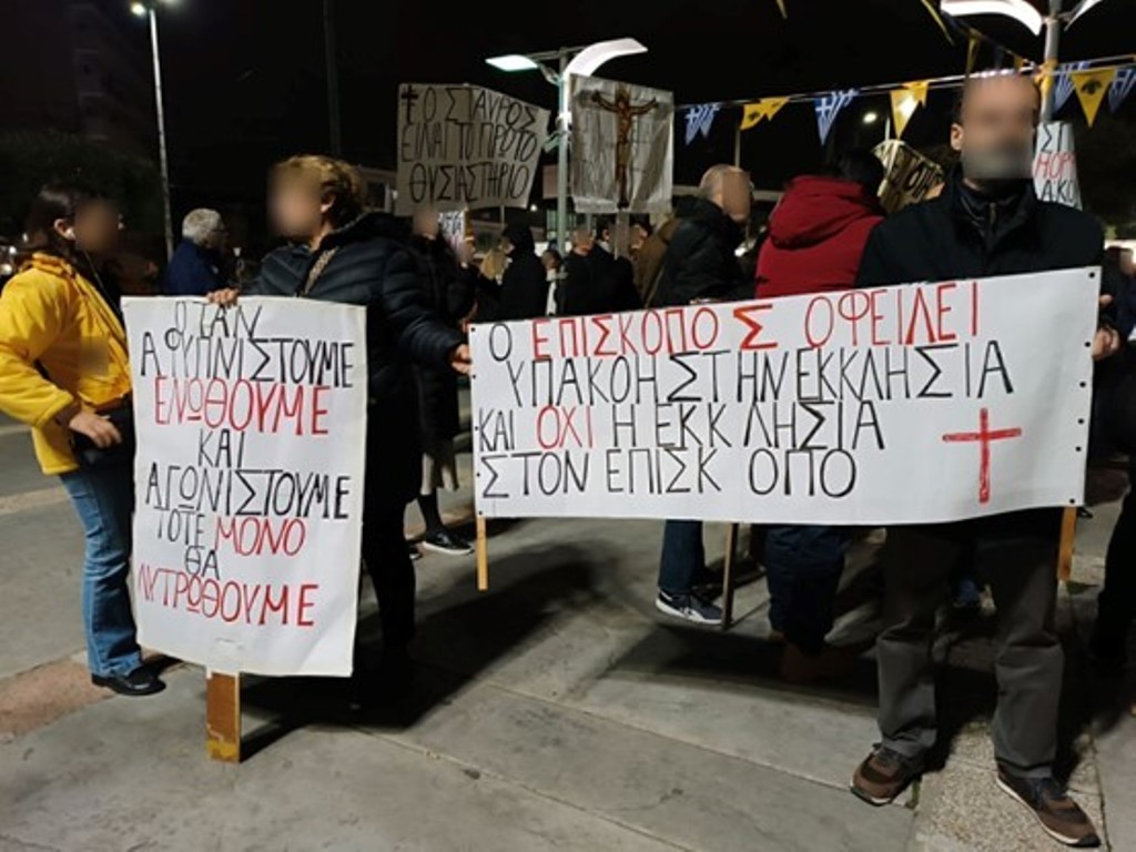 Την Πέμπτη 16 Ιανουαρίου 2025, πραγματοποιήθηκε, στον προαύλιο χώρο του πανηγυρίζοντα Ι.Ν. Αγίου Αντωνίου (πολιούχου Μητροπόλεως Περιστερίου) στις 17:30, συγκέντρωση διαμαρτυρίας επί του επίμαχου θέματος της αποβολής του Εσταυρωμένου και του Σταυρού (λιτανειών) πίσω από την Αγ. Τράπεζα και επί άλλων ανακυψάντων θεμάτων πίστεως που αφορούν τόσο την Τοπική Εκκλησία όσο και εν γένει την Ορθοδοξία.
