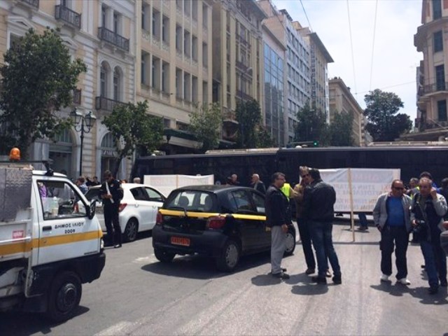 Στο σημείο έφθασε και μηχανοκίνητη πορεία δημοτικών υπαλλήλων, που αρχικά είχε ανακοπεί από παρατεταγμένες κλούβες στη Σταδίου, στο ύψος της πλατείας Κλαυθμώνος. Ωστόσο, μετά από διαπραγματεύσεις, οι αστυνομικοί επέτρεψαν στους διαδηλωτές να κατευθυνθούν προς το Σύνταγμα.