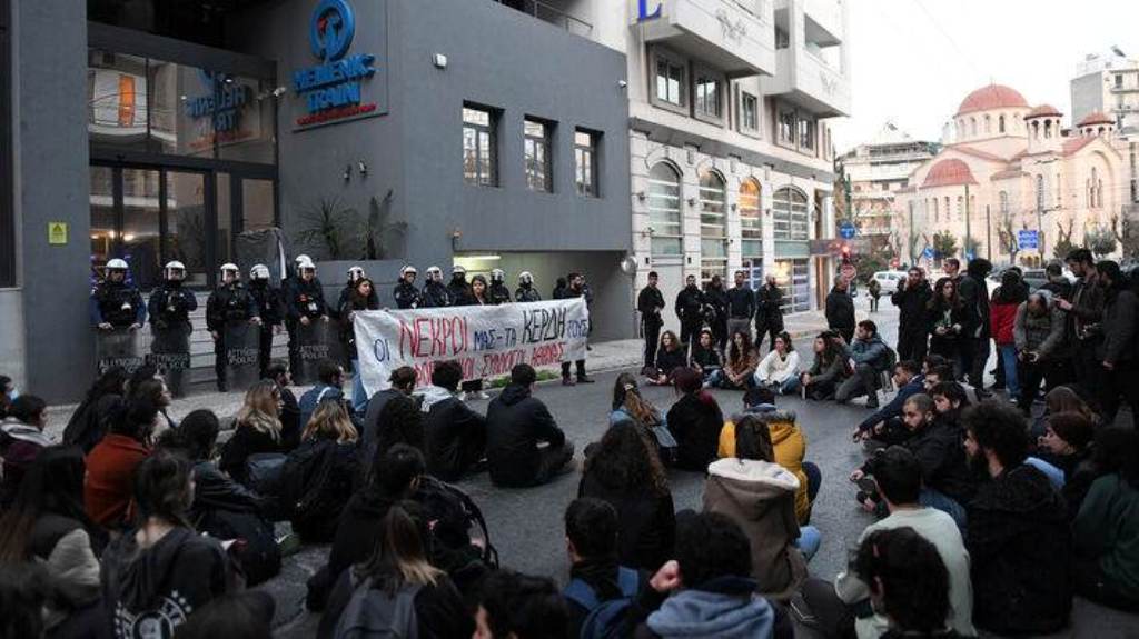 Στα γραφεία της Hellenic Train στη Λεωφόρο Συγγρού συγκεντρώνεται κόσμος, λίγες ώρες μετά το τραγικό δυστύχημα στα Τέμπη που στοίχισε έως τώρα τη ζωή σε 36 άτομα.