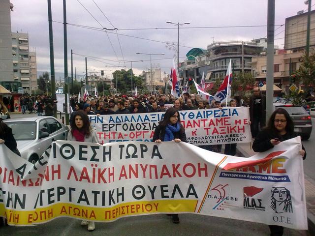 Μεγάλη συγκέντρωση και πορεία στους δρόμους του Περιστερίου πραγματοποίησαν το Σάββατο 11 Φλεβάρη το πρωί δυνάμεις του ΠΑΜΕ στο πλαίσιο της 48ωρης απεργίας και της πανελλαδικής κινητοποίησης ενάντια στα νέα αντιλαϊκά μέτρα της μαύρης συγκυβέρνησης Παπαδήμου.