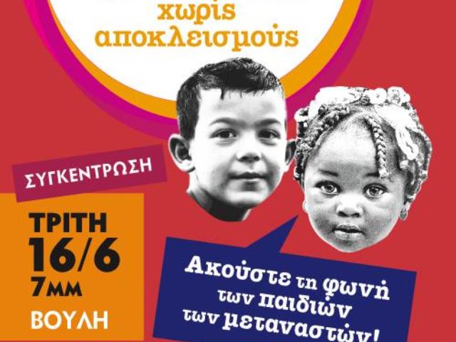 Με το σύνθημα «ιθαγένεια για όλα τα παιδιά, χωρίς αποκλεισμούς» γονείς και παιδιά πραγματοποίησαν συγκέντρωση, που διοργανώθηκε από μεταναστευτικές οργανώσεις και την ΚΕΕΡΦΑ (Κίνηση Ενωμένοι Ενάντια στο Ρατσισμό και τη Φασιστική Απειλή), στην πλατεία Συντάγματος και αργότερα διαμαρτυρία ως την είσοδο της Βουλής.