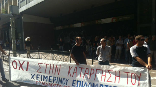 Σε εξέλιξη είναι από τις 11.00 το πρωί η συγκέντρωση των οικοδόμων έξω από το Υπουργείο Εργασίας επί της Σταδίου.