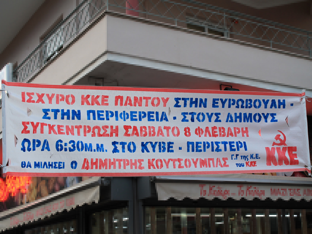 Το θέμα της συγκέντρωσης όπως αναφέρεται στα πανό που έχουν αναρτηθεί στην πόλη θα είναι, «ΙΣΧΥΡΟ ΚΚΕ ΠΑΝΤΟΥ ΣΤΗΝ ΕΥΡΩΒΟΥΛΗ-ΣΤΗΝ ΠΕΡΙΦΕΡΕΙΑ-ΣΤΟΥΣ ΔΗΜΟΥΣ.