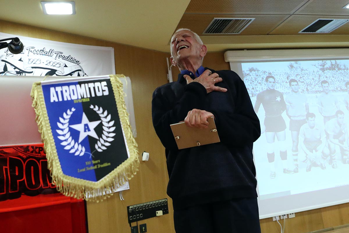 Ιδιαίτερη συγκίνηση προκάλεσαν τα λόγια και η ιστορία που ειπώθηκαν από τους παλαίμαχους ποδοσφαιριστές της ομάδας “μπροστά στο μεγαλείο του ΑΤΡΟΜΗΤΟΥ τα λόγια είναι φτώχεια…”