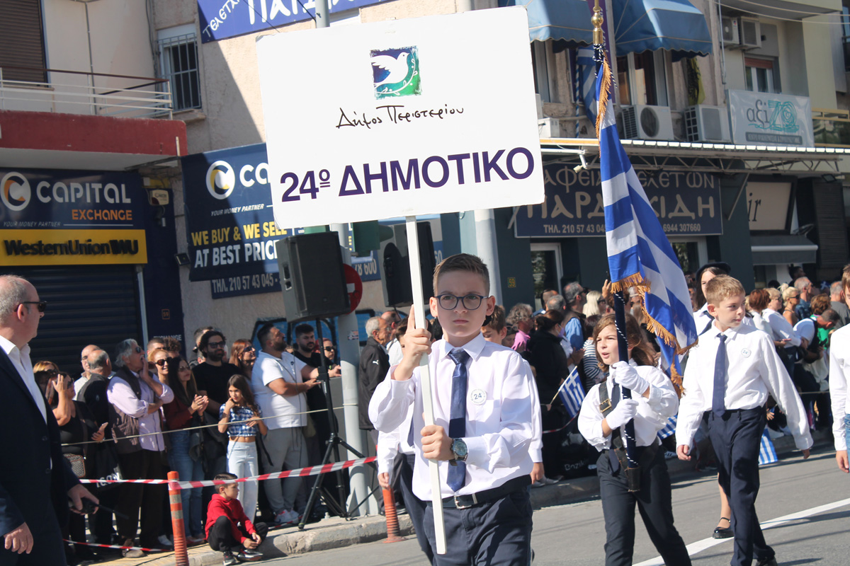 Με τη βοήθεια του καιρού που ήταν καλοκαιρινός και υπό το βλέμμα του Πρωθυπουργού, οι μαθητές και μαθήτριες των σχολείων στο Περιστέρι παρέλασαν τιμώντας την Εθνική Επέτειο της 28ης Οκτωβρίου.