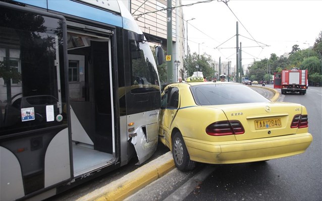 Σύγκρουση τραμ με ταξί στο κέντρο της Αθήνας
