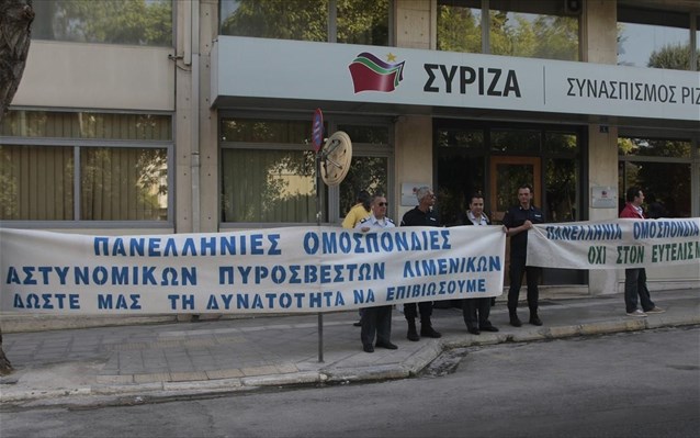 Σε συμβολική κατάληψη των γραφείων του ΣΥΡΙΖΑ στην Κουμουνδούρου προχώρησαν ένστολοι συνδικαλιστές το πρωί του Σαββάτου, αναρτώντας πανό, σε ένδειξη διαμαρτυρίας για το ασφαλιστικό νομοσχέδιο.