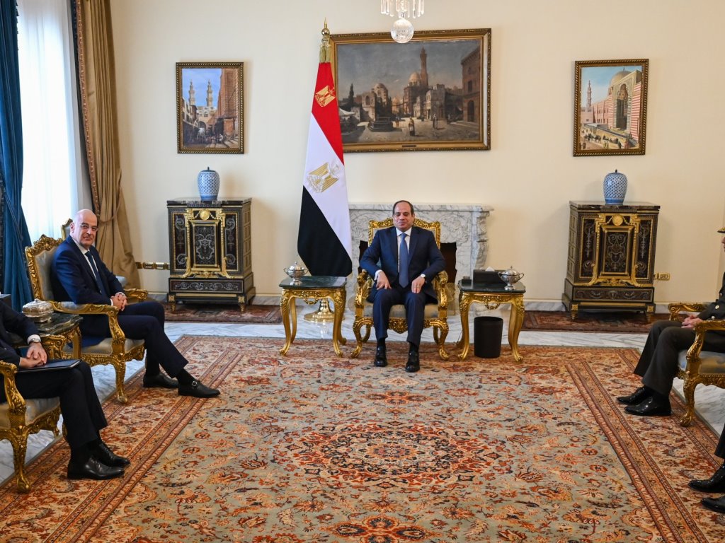 Ο υπουργός Εθνικής Άμυνας Νίκος Δένδιας έγινε, σήμερα, δεκτός από τον πρόεδρο της Αιγύπτου Αμπντέλ Φατάχ Αλ Σίσι στο πλαίσιο επίσημης επίσκεψης, που πραγματοποιεί στη χώρα.