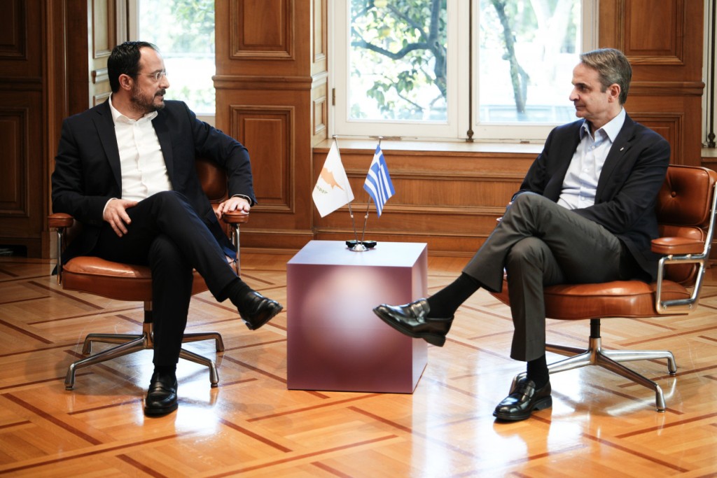 Οι εξελίξεις στο Κυπριακό εν όψει της επικείμενης πενταμερούς, αλλά και η ανάγκη να υπάρξουν περισσότερες επενδύσεις από την Ευρωπαϊκή Ένωση στην Άμυνα τίθενται επί τάπητος κατά τη συνάντηση του πρωθυπουργού, Κυριάκου Μητσοτάκη και του προέδρου της Κυπριακής Δημοκρατίας Νίκου Χριστοδουλίδη, η οποία πραγματοποιείται αυτήν την ώρα.