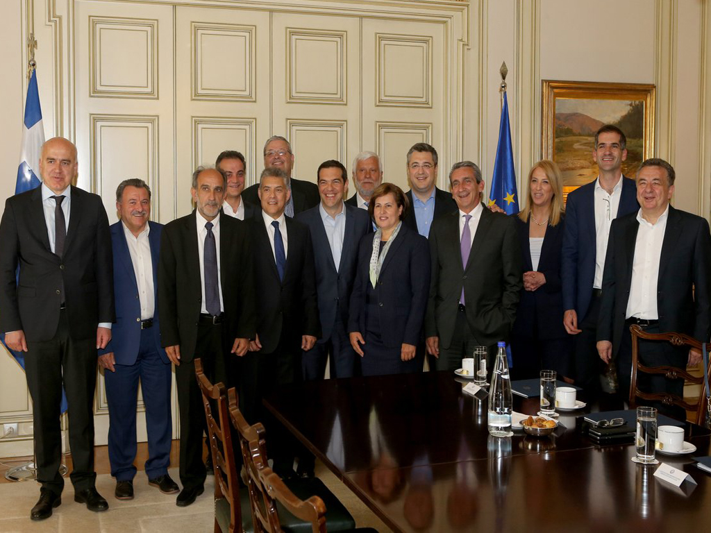 Συνάντηση είχε ο πρωθυπουργός με τους 13 περιφερειάρχες της χώρας, συμμετέχοντος και του υπουργού Εσωτερικών, Πάνου Σκουρλέτη.