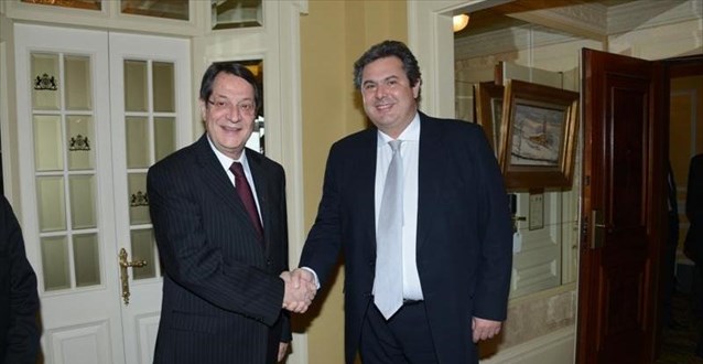Το Κυπριακό και η οικονομική κρίση βρέθηκαν στο επίκεντρο της συνάντησης του προέδρου των Ανεξάρτητων Ελλήνων Πάνου Καμμένου με το νέο πρόεδρο της Κυπριακής Δημοκρατίας Νίκο Αναστασιάδη, ο οποίος πραγματοποιεί επίσημη επίσκεψη στην Αθήνα.