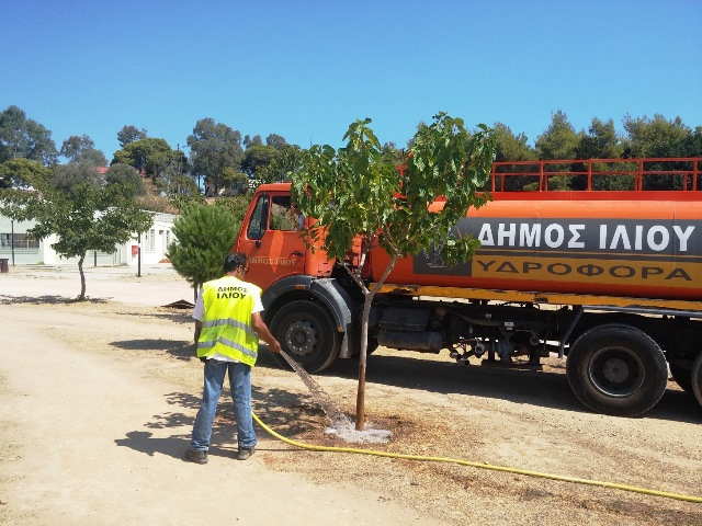 Ο Δήμος Ιλίου και η Υπηρεσία Πρασίνου συνεχίζουν τις προσπάθειες για τη διάσωση του Πάρκου Περιβαλλοντικής Ευαισθητοποίησης «Αντώνης Τρίτσης» ποτίζοντας με υδροφόρες τα δένδρα που έχουν ανάγκη από νερό.