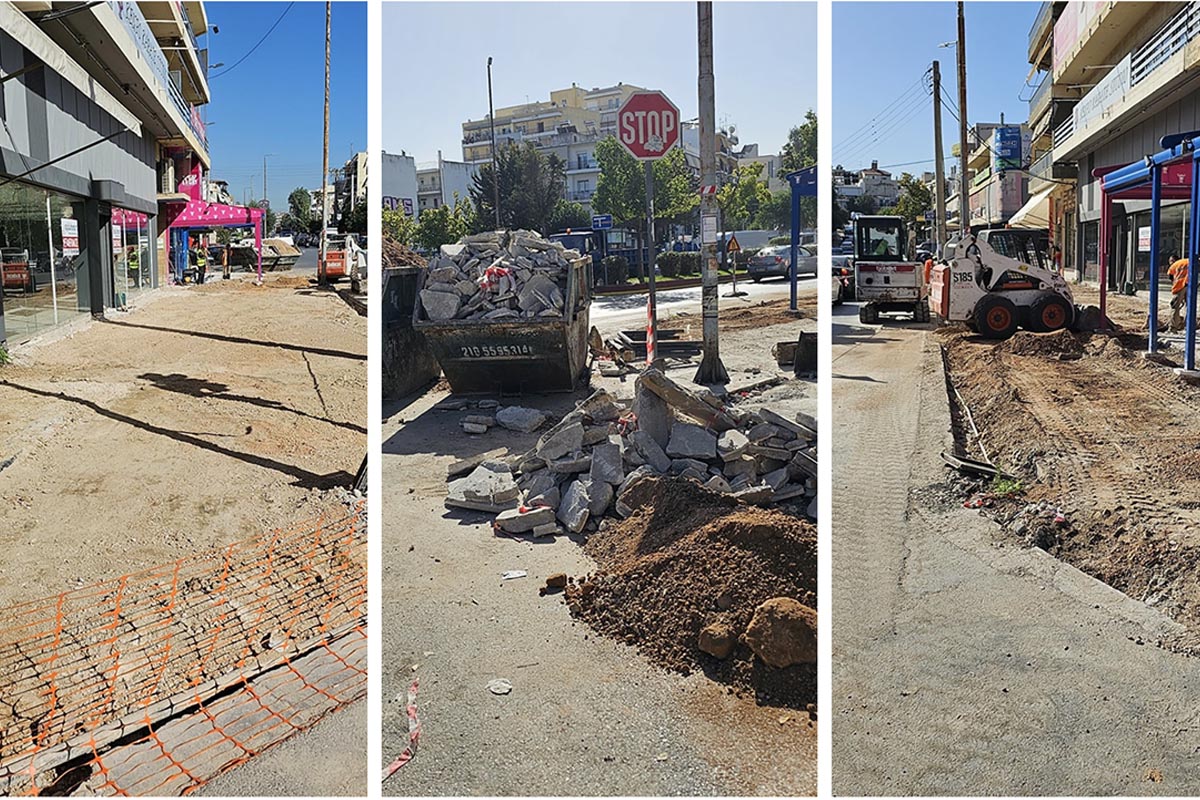 Πραγματικό εργοτάξιο θυμίζει η Δωδεκανήσου, της οποίας τα πεζοδρόμια έχουν καταστραφεί και γίνεται η αναμόρφωσή τους.