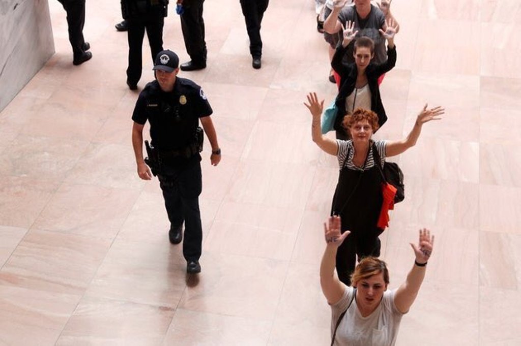 Εκτός από τη Σάραντον, η αστυνομία συνέλαβε και την υποψήφια των Δημοκρατικών Πραμίλα Τζεϊαπάλ, η οποία χαρακτήρισε απάνθρωπη την πολιτική του προέδρου Ντόναλντ Τραμπ για τη μεταχείριση των μεταναστών στα σύνορα.