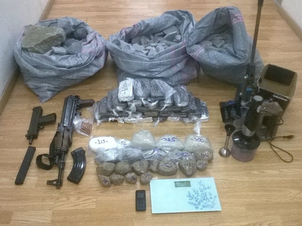 Οι συλληφθέντες είχαν εγκαταστήσει σε σπίτι στις Αχαρνές ένα εργαστήριο νόθευσης και επανατυποποίησης ναρκωτικών, όπου βρέθηκαν: ηρωίνη βάρους 18.115 γραμμαρίων, κοκαΐνη βάρους 400 γραμμαρίων, ένα υποπολυβόλο UZI, ένα καλάσνικοφ, μία πρέσα επανατυποποίησης ναρκωτικών, ένας αναδευτήρας και μία ηλεκτρονική ζυγαριά ακριβείας.
