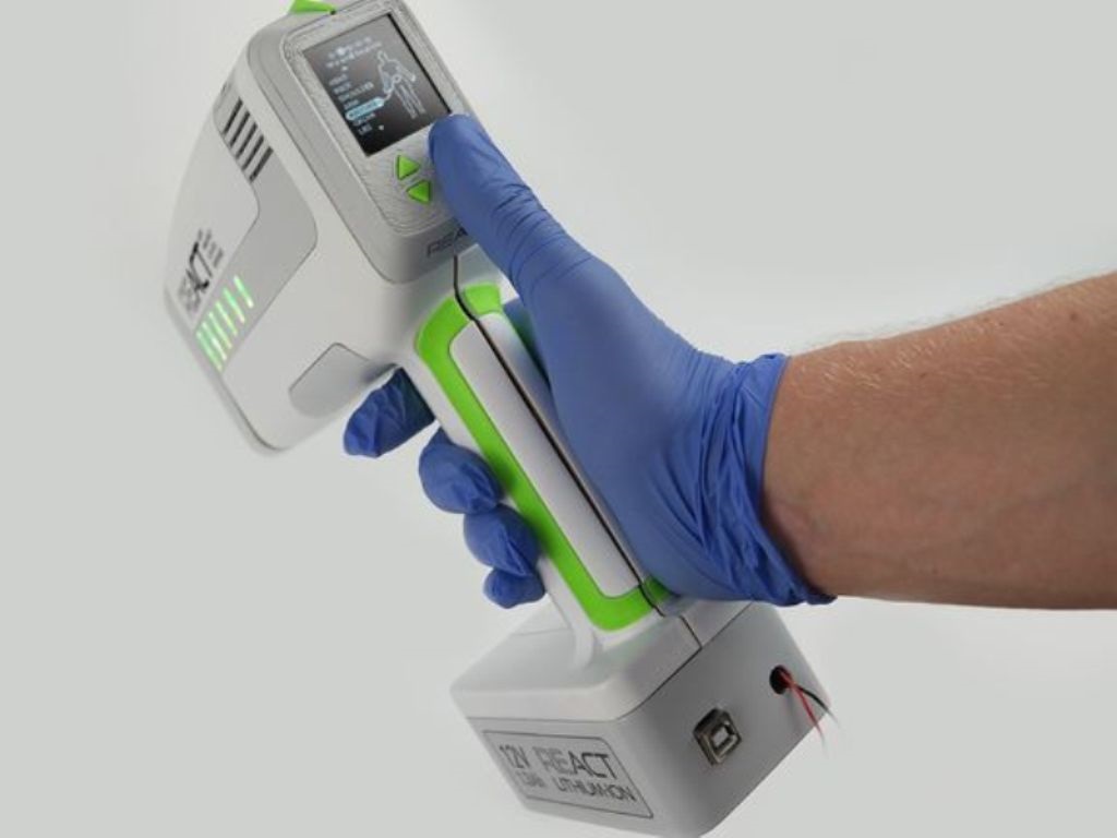 Το REACT αποτελείται από δύο τμήματα: Ένα «ταμπόν» ιατρικής σιλικόνης και μια συσκευή χειρός- «ενεργοποιητής» (actuator).