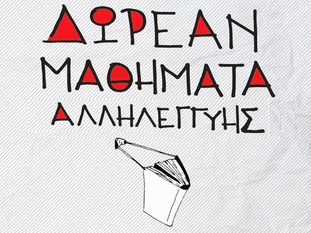 Η Εργατική Λέσχη Περιστερίου θα παραμείνει ανοιχτή τη Δευτέρα 22.09 και την Παρασκευή 26.09 από τις 6 το απόγευμα και μετά για δηλώσεις συμμετοχής μαθητών, δασκάλων και καθηγητών στα ΔΩΡΕΑΝ ΜΑΘΗΜΑΤΑ ΑΛΛΗΛΕΓΓΥΗΣ!