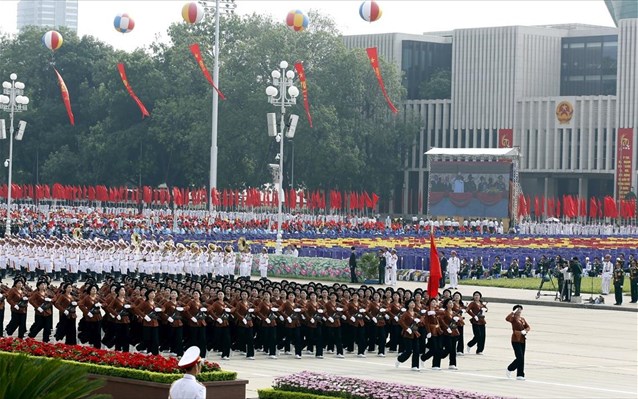 Περισσότεροι από 30.000 άνθρωποι, από στρατιώτες μέχρι μαθήτριες σχολείων, παρήλασαν στον κέντρο του Ανόι για τα 70 χρόνια από την ανακήρυξη της Λαοκρατικής Δημοκρατίας του Βιετνάμ από τον κομμουνιστή, ιστορικό εθνικό ηγέτη της χώρας Χο Τσι Μινχ.