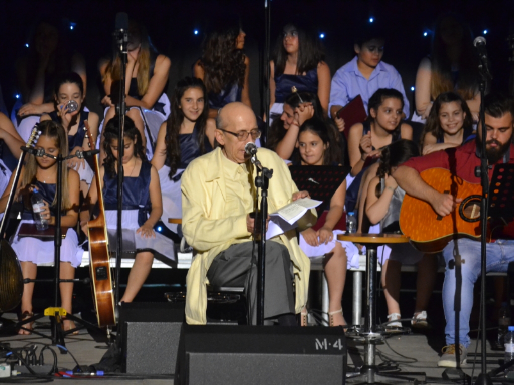 Ο ποιητής αφιέρωσε από σκηνής στο Σχολείο ένα έμμετρο κείμενό του ενώ οι τραγουδιστές Πένυ Ξενάκη και Γιάννης Μαθές ερμήνευσαν και απήγγειλαν σπουδαία τραγούδια του.