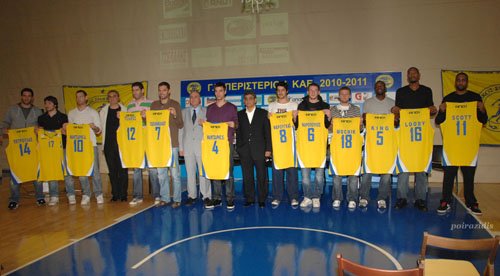 Σ’ αυτό το πνεύμα έγινε στο κλειστό γυμναστήριο Περιστερίου (το οποίο διαμορφώθηκε κατάλληλα) η παρουσίαση της επαγγελματικής ομάδας μπάσκετ περιόδου 2010-11.