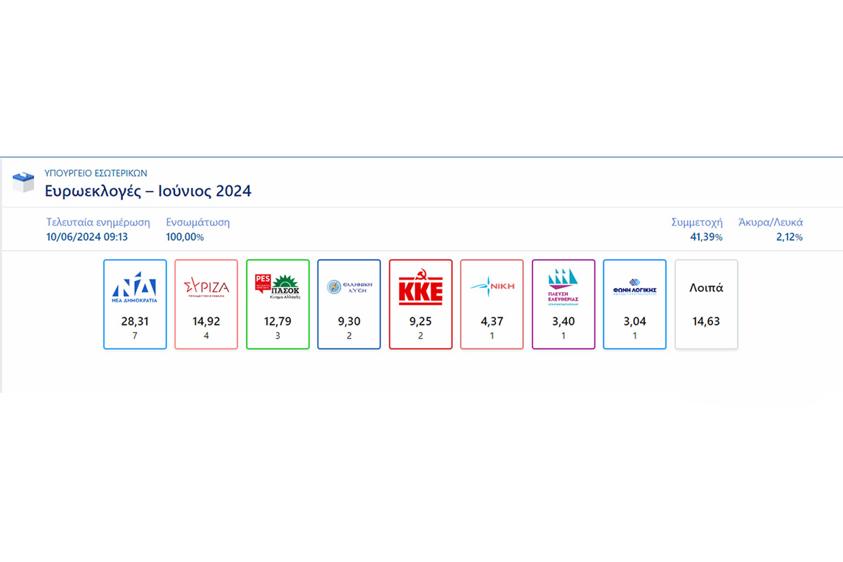 Ολοκληρώθηκε η ενσωμάτωση των αποτελεσμάτων για τις ευρωεκλογές 2024, και έτσι έχουμε πλέον τελικά αποτελέσματα.
