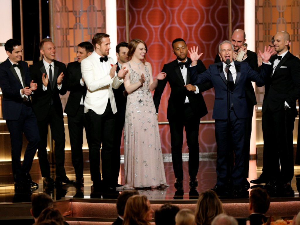 Το ρομαντικό και γλυκόπικρο μιούζικαλ «La La Land» ήταν ασταμάτητο πετυχαίνοντας το απόλυτο με επτά βραβεία σε επτά υποψηφιότητες: Σκηνοθεσίας, Καλύτερης Ταινίας (κωμωδία/μιούζικαλ), Α’ Ανδρικού και Α’ Γυναικείου Ρόλου για τους Ryan Gosling και Emma Stone αντίστοιχα, Σεναρίου, Πρωτότυπου Τραγουδιού και Καλύτερης Μουσικής.