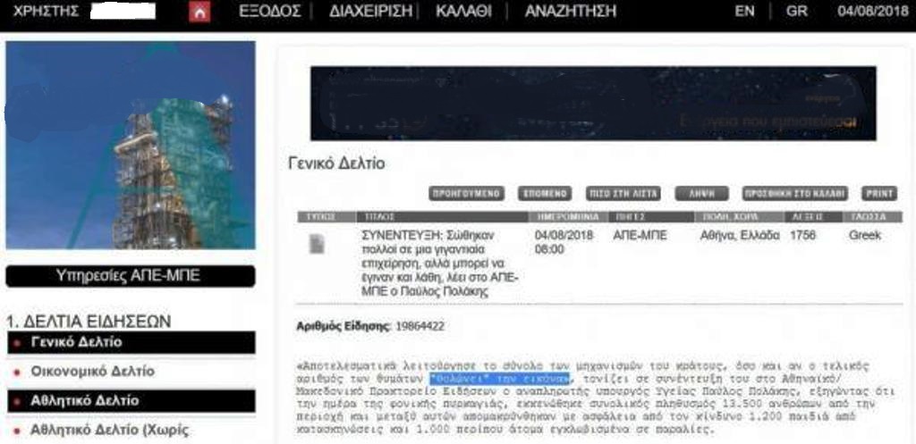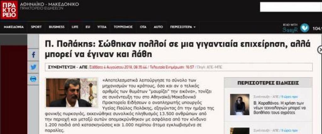 Μετά τις έντονες αντιδράσεις που προκάλεσε η δήλωση του αναπληρωτή υπουργού Υγείας, Παύλου Πολάκη, για την τραγωδία στο Μάτι ότι «αποτελεσματικά λειτούργησε το σύνολο των μηχανισμών του κράτους, όσο και αν ο τελικός αριθμός των θυμάτων «θολώνει» την εικόνα» το Αθηναϊκό – Μακεδονικό Πρακτορείο Ειδήσεων φαίνεται πως προχώρησε σε αλλαγές στο αρχικό κείμενο.
