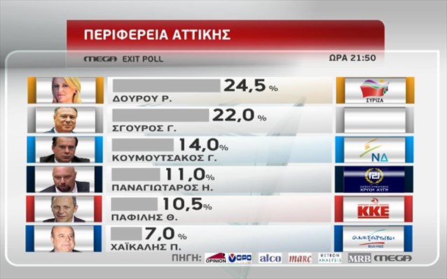 Το νεότερο exit poll για την Περιφέρεια Αττικής (ώρα 21.50)