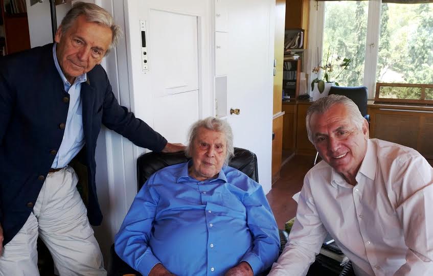 Δίωρη συζήτηση εφ’ όλης της ύλης είχαν με τον Μίκη Θεοδωράκη, ο Κώστας Γαβράς και ο Δήμαρχος Περιστερίου Ανδρέας Παχατουρίδης, τη Δευτέρα 29 Ιουνίου 2015 στην κατοικία του.