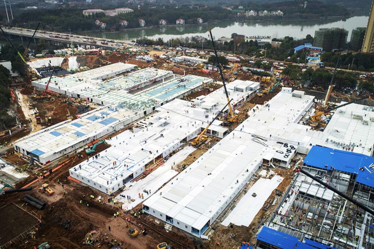 Τέσσερις κατασκευαστικές ξεκίνησαν στις 24 Ιανουαρίου την κατασκευή του 1.000 κλινών ενώ πάνω από 1.000 εργάτες δούλευαν ασταμάτητα προκειμένου το νέο νοσοκομείο να είναι έτοιμο στις 2 Φεβρουαρίου και μια ημέρα μετά να λειτουργήσει κανονικά.