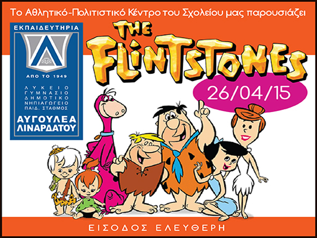 Οι μαθητές του Αθλητικού και Πολιτιστικού Κέντρου των Εκπαιδευτηρίων Αυγουλέα-Λιναρδάτου, «επιστρέφουν» στην Παλαιολιθική εποχή και την Κυριακή 26 Απριλίου παρουσιάζουν στο Θέατρο του Κολλεγίου Αθηνών το «The Flintstones».