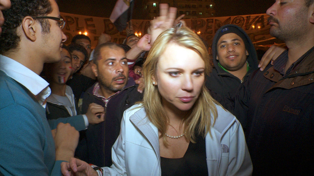 Όπως έγινε γνωστό από το αμερικανικό κανάλι, η Λάρα Λόγκαν παρακολουθούσε τους πανηγυρισμούς του πλήθους μετά την ανακοίνωση της παραίτησης του Μουμπάρακ, για λογαριασμό της εκπομπής “60 λεπτά “, όταν την περικύκλωσε ομάδα περίπου 200 ατόμων που βρισκόντουσαν σε έξαλλη κατάσταση.