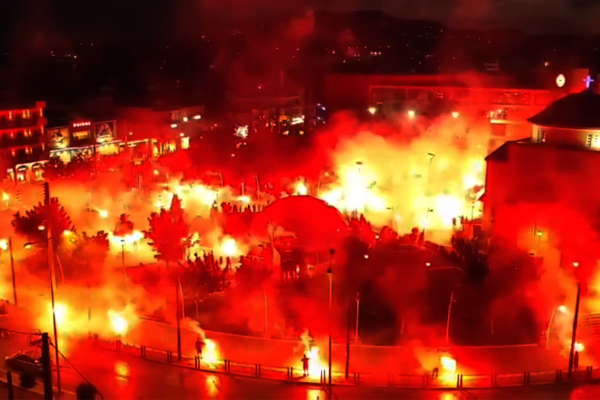 Μια φαντασμαγορική γιορτή για τον Ατρόμητο πραγματοποίησαν οι οργανωμένοι οπαδοί της ομάδας στην πλατεία του Δημαρχείου Περιστερίου.