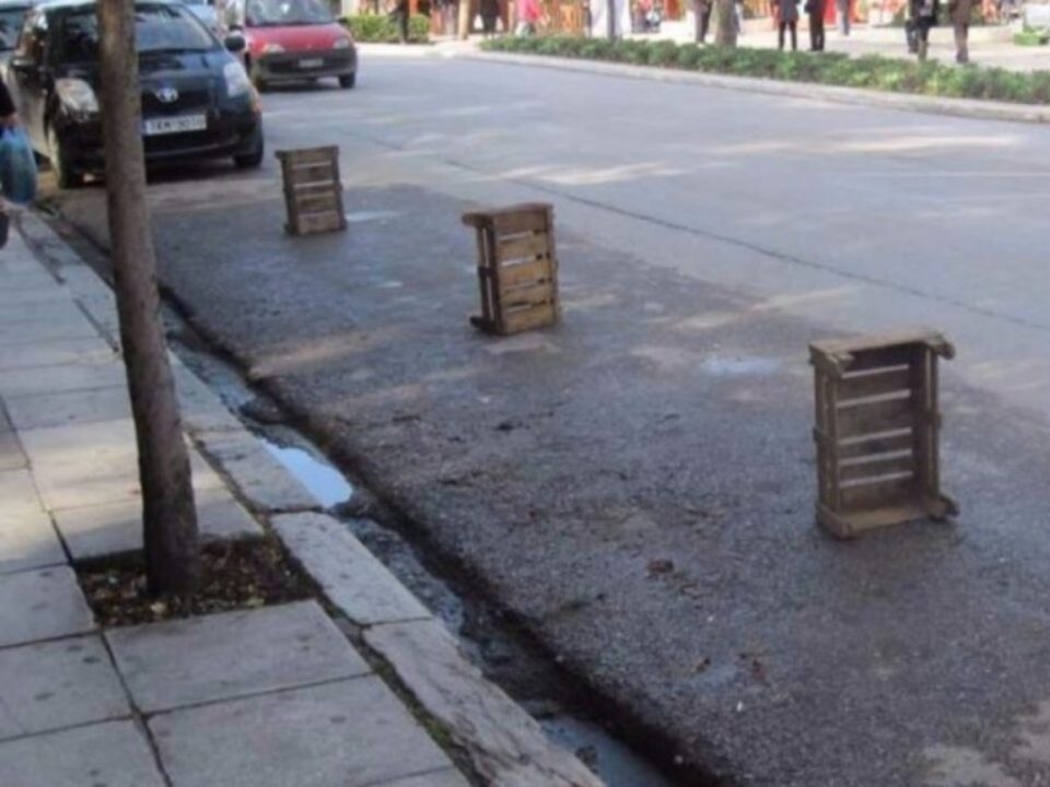 Άλλοι πάλι θεωρούν έξυπνη λύση να τοποθετήσουν αντικείμενα, όπως γλάστρες, τσιμεντόλιθους, ξύλα, κώνους, κάδους κτλ, καταλαμβάνοντας μέρος του δρόμου, έτσι ώστε να μην χάσουν τη θέση στάθμευσης, που λανθασμένα θεωρούν ότι τους ανήκει.