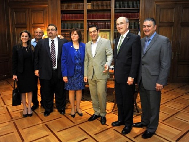 Kαλωσορίζοντας στο Μέγαρο Μαξίμου, αντιπροσωπεία της ομογενειακής οργάνωσης ΑΧΕΠΑ.