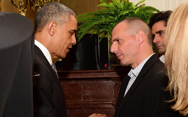 Οι εμπειρίες των ΗΠΑ και της Ελλάδας, από τη διαχείριση των οικονομικών κρίσεων, βρέθηκαν στο επίκεντρο της ολιγόλεπτης συνομιλίας που είχαν στον Λευκό Οίκο ο Αμερικανός πρόεδρος Μπαράκ Ομπάμα και ο υπουργός Οικονομικών Γιάνης Βαρουφάκης.