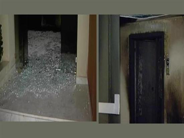Άγνωστοι έσπασαν με βαριοπούλα την είσοδο τριώροφου κτηρίου, όπου στεγάζεται και το τεχνικό γραφείο του κ. Κεδίκογλου, ο οποίος ήταν στο σπίτι μαζί με τη σύζυγο του και το τρίχρονο παιδί τους και πέταξαν στο εσωτερικό μία βόμβα μολότοφ με αποτέλεσμα να προκληθεί πυρκαγιά.