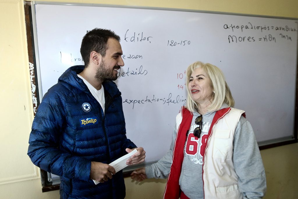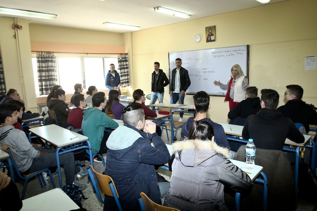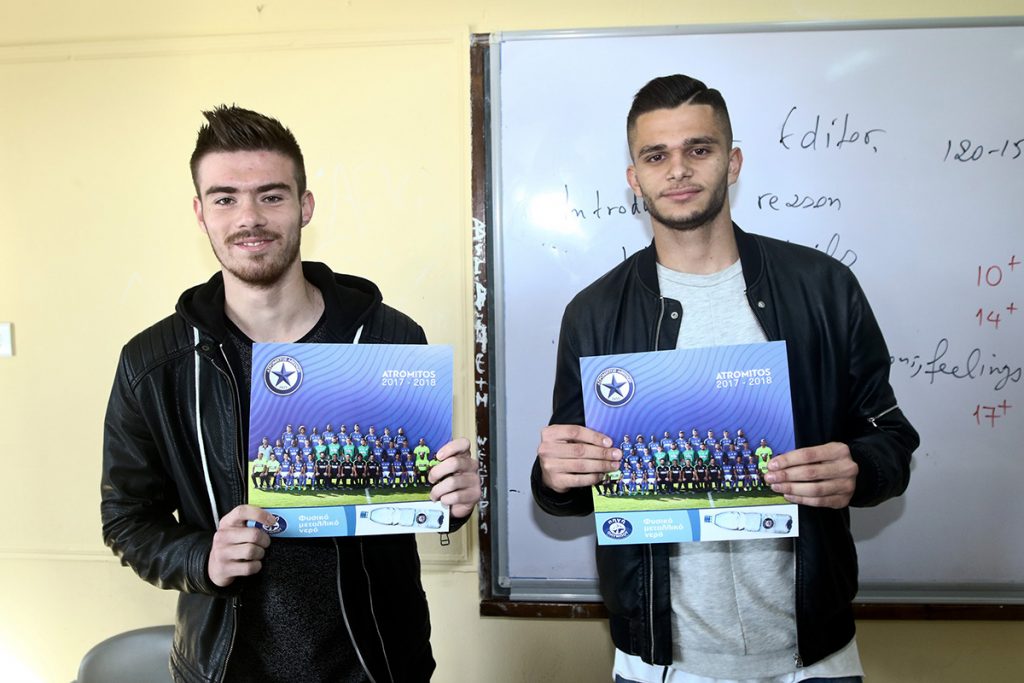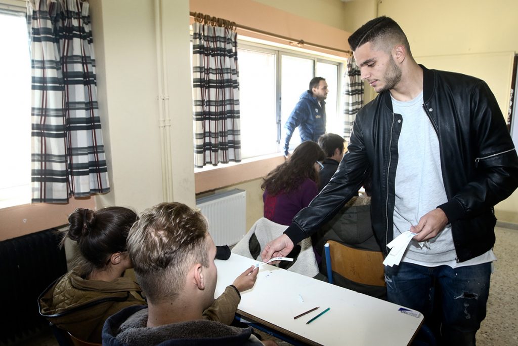 Τα παιδιά του σχολείου επεφύλαξαν όμορφη υποδοχή στους ποδοσφαιριστές Στέφανο Στρούγγη και Νίκο Λαζαρίδη, οι οποίοι υπέγραψαν δεκάδες αυτόγραφα και έβγαλαν αρκετές selfies με τους μαθητές.