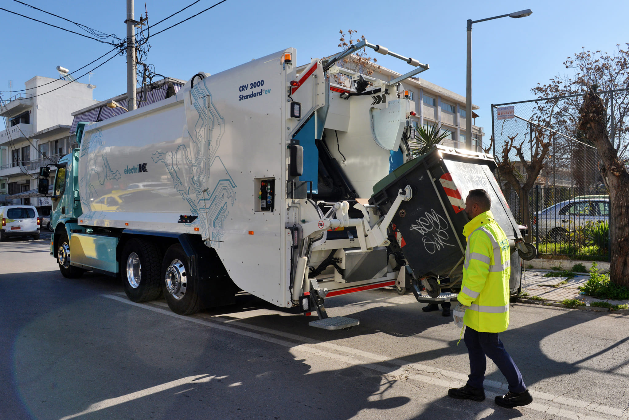 Το 1ο ηλεκτροκίνητο απορριμματοφόρο στην Ελλάδα βγήκε στους δρόμους της πόλης του Περιστερίου, πιλοτικά, για την αποκομιδή απορριμμάτων.
