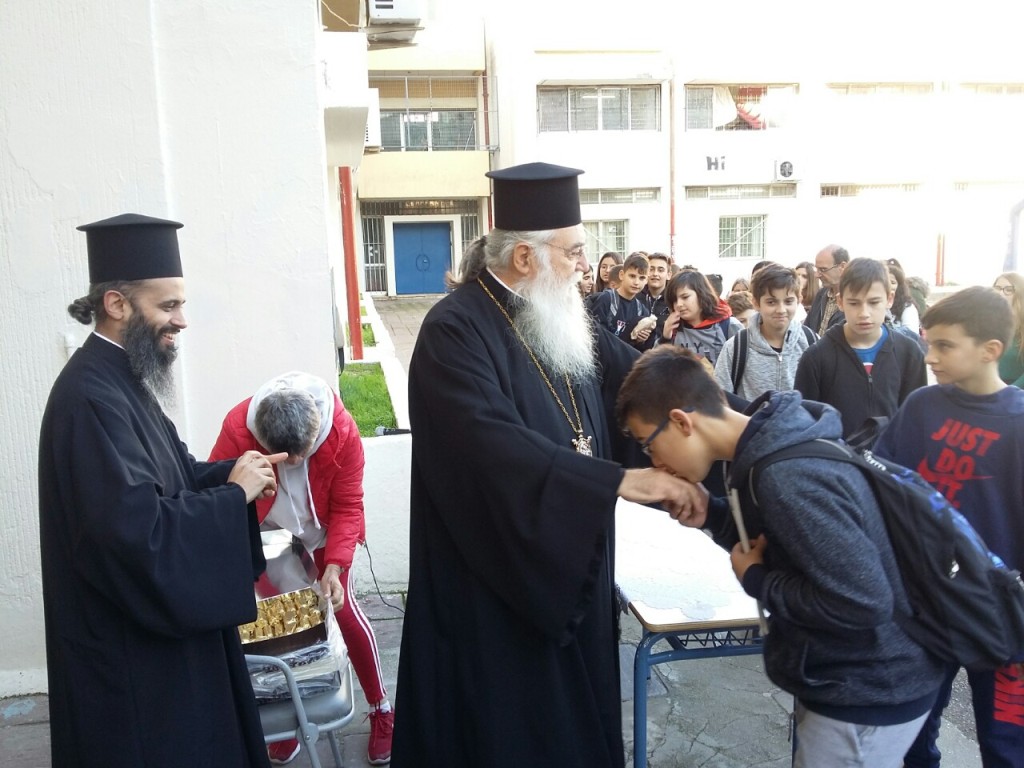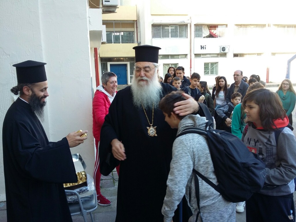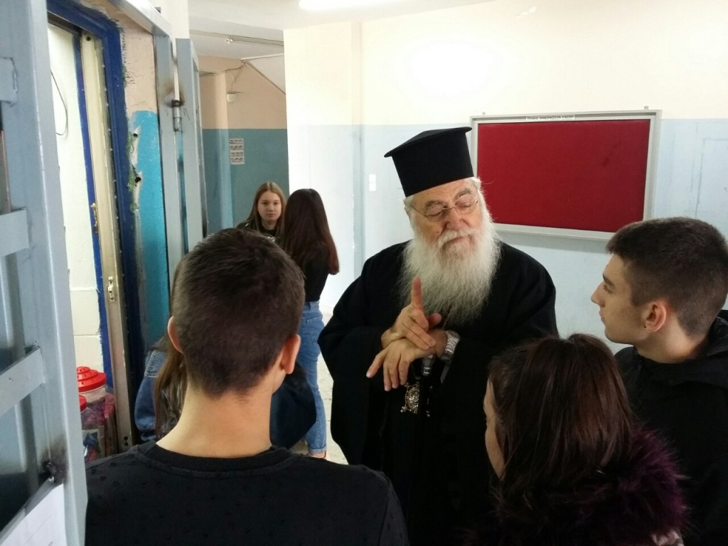 Ο Σεβασμιότατος επικοινώνησε με τους μαθητές και καθηγητές στη διάρκεια του πρώτου διαλείμματος, ευχήθηκε σε όλους Ευλογημένα Χριστούγεννα και τόνισε ιδιαιτέρως το αγαθό και τη διαδικασία της μαθήσεως, της όποιας στόχος είναι πέρα από την καλλιέργεια της γνώσεως να διαμορφώνει χαρακτήρα και να δημιουργεί πρόσωπα.