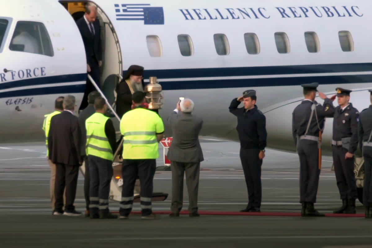 Στην Ελλάδα με κάθε μεγαλοπρέπεια έφτασε το Μεγάλο Σάββατο (04/05/2024) το Άγιο Φως στο αεροδρόμιο «Ελευθέριος Βενιζέλος» και στη συνέχεια μεταφέρθηκε όλη τη χώρα με ειδικές πτήσεις.