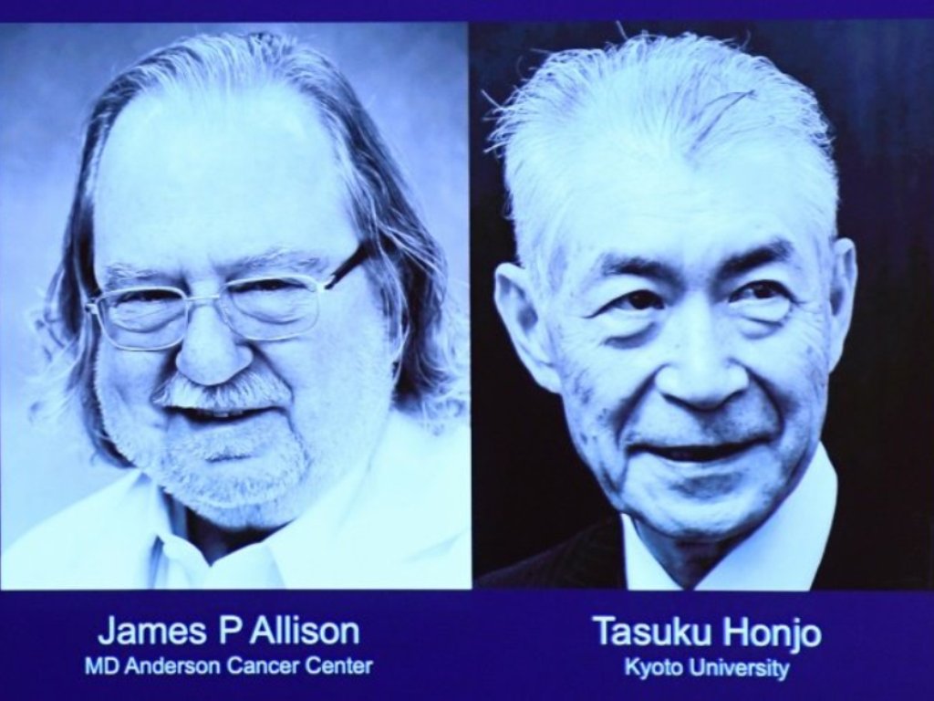 Δύο ανοσολόγοι, ο Αμερικανός Τζέιμς Π. Αλισον και ο Ιάπωνας Τασούκου Χόνζο βραβεύονται με το Νόμπελ Ιατρικής για τις έρευνές τους στον τομέα της ανοσοθεραπείας που αποδείχθηκαν ιδιαίτερα αποτελεσματικές στην αντιμετώπιση του επιθετικού καρκίνου.