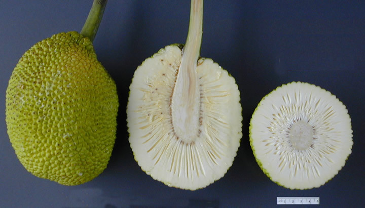 Το δέντρο μπορεί να παράγει 450 κιλά καρπού ανά εποχή. Εκατό γραμμάρια καρπού περιέχουν 121 θερμίδες και είναι πλούσια σε φυτικές ίνες, κάλιο, φώσφορο, ασβέστιο, χαλκό και άλλα θρεπτικά συστατικά. Η υφή και η οσμή του καρπού θυμίζουν φρέσκο ψωμί.