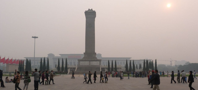 Την Κυριακή η ατμοσφαιρική ρύπανση στο Πεκίνο άγγιξε τα 271 και η πλατεία Τιενανμέν σχεδόν δε φαινόταν. Οπως αναφέρει ο φωτογράφος, τα μάτια του έτρεχαν και πονούσε ο λαιμός του χωρίς την ειδική μάσκα.