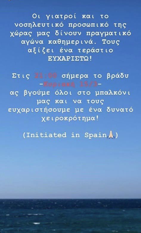 Αυτό συνέβη έπειτα από «αυθόρμητη πρωτοβουλία» πολιτών που καλούσαν όλη τη χώρα να πραγματοποιήσει αυτή τη συμβολική πράξη προς τιμήν των αφανών ηρώων αυτής της «μάχης» απέναντι στον κορωνοϊό.