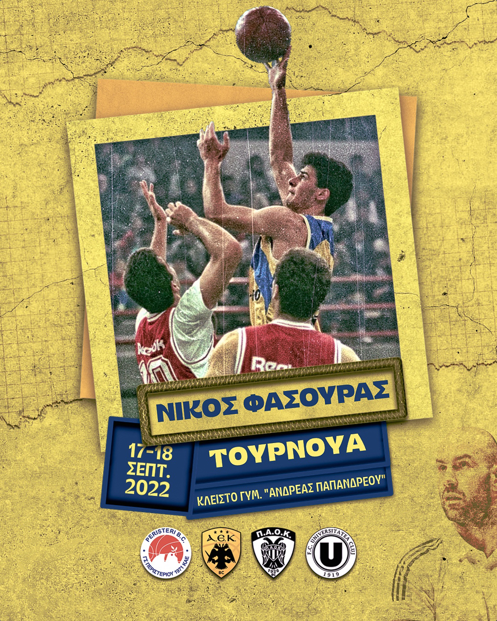 “Το 3ο τουρνουά «Νίκος Φάσουρας» διοργανώνει η ΚΑΕ Περιστέρι τιμώντας τη μνήμη ενός σπουδαίου αθλητή του Συλλόγου, το διήμερο 17-18 Σεπτεμβρίου στο κλειστό «Ανδρέας Παπανδρέου»!