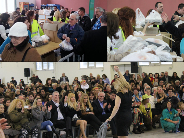 Πλήθος κόσμου βρέθηκε στη διανομή τροφίμων παρά τις καιρικές συνθήκες, δείχνοντας για μια ακόμα φορά το σημαντικό πρόβλημα που υπάρχει λόγω της οικονομικής κρίσης και ανεργίας.